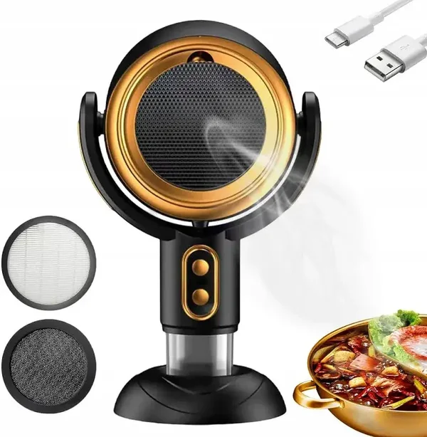 Przenośna Okap Kuchenny, USB Wentylator Stołowy z 2 Prędkościami, Wymienny i Zmywalny Filtr, Bezprzewodowy Okap Kuchenny, Idealny do Grillowania w Pomieszczeniach, Hot Pot, Duży Pojemnik na Tłuszcz, Okap do Tłuszczu